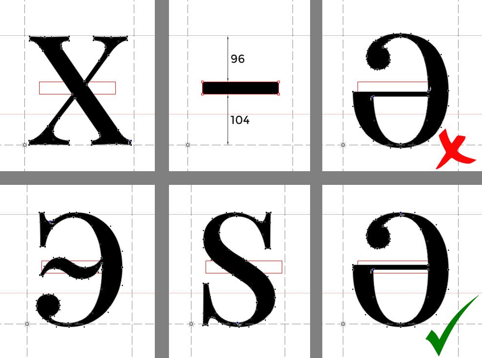 Bəzi fontlarda (xüsusən serif fontlarda) "Ə" hərfinin orta xətti heç də tam ortada olmur. Orta xətti tapmaq üçün bəzi hərflərin orta elementlərindən istifadə etmək olar.