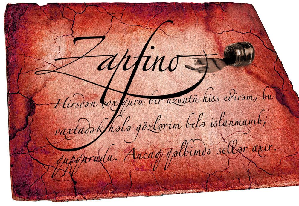 Əl yazısı - kaliqrafik stildə olduğundan çox mürəkkəb quruluşu var. Məsələn, diqqət etsəniz, Zapfino ilə yazılan bu yazıda sözün ortasındakı hər hansı bir "ə" hərfi ilə, sözün əvvəlindəki "ə" hərflər fərqlənir. Buna "alternates" deyirlər. Və eləcədə "də", "fə", "rə" və s. birləşmələrdəki hərflərin stili fərqlidir. Bu da "ligatures" adlanır. Liqaturalar oxunaqlığı və ahəngi tamamlamaq üçün istifadə olunur. Yuxarıdakı şəkildə "fi" liqaturasına fikir verin. Bu ən çox istifadə olunan liqaturadır. Yəqin indi Sizə aydın oldu ki, fontlar.info saytının ikonunu niyə məhz seçmişəm.